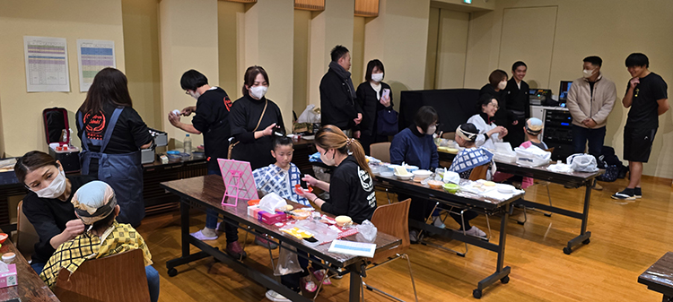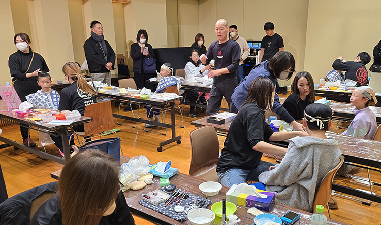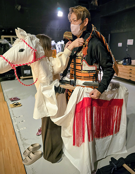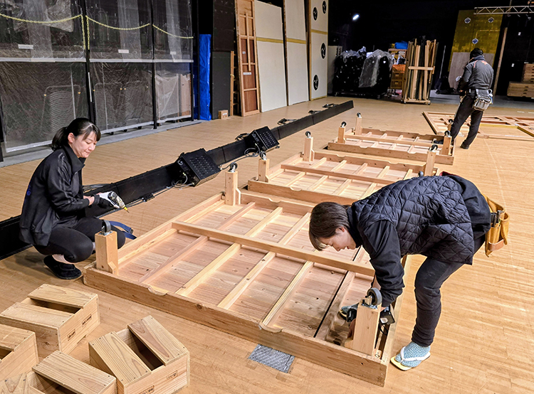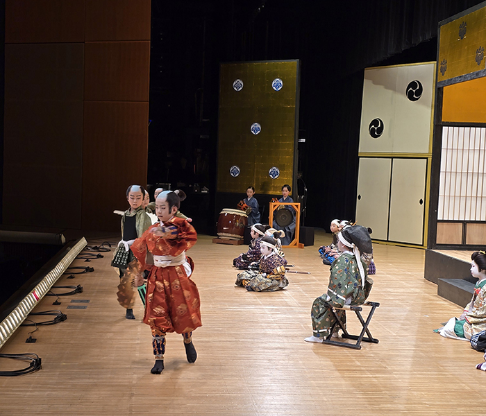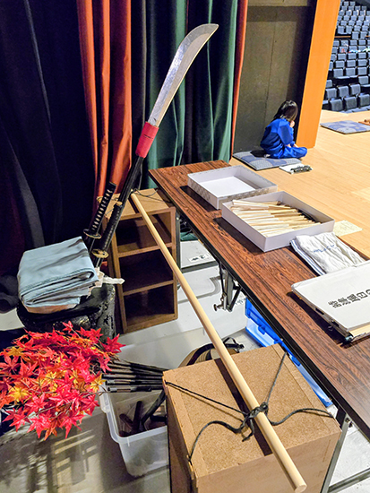 トラパルは平成23年より歌舞伎体験レクチャーに参加させて頂いており、本公演でも大道具と代表入井が附け打ち指導を担当させて頂きました。